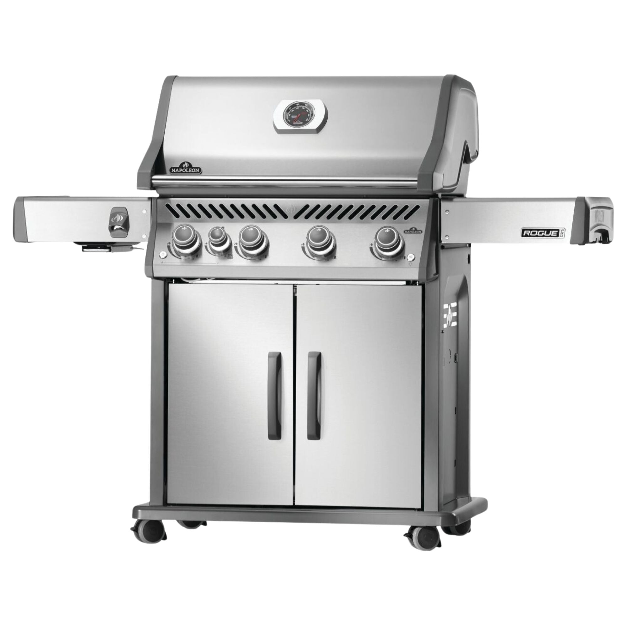 Elevate your outdoor cooking with the Napoleon Rogue® PRO 525 SIB Freestanding Gas Grill. Designed for versatility and performance, this sleek black propane grill features four main burners and an infrared side burner, giving you the power and precision to sear, roast, or prepare sauces and sides with ease. Its spacious cooking area makes it ideal for family meals and entertaining.