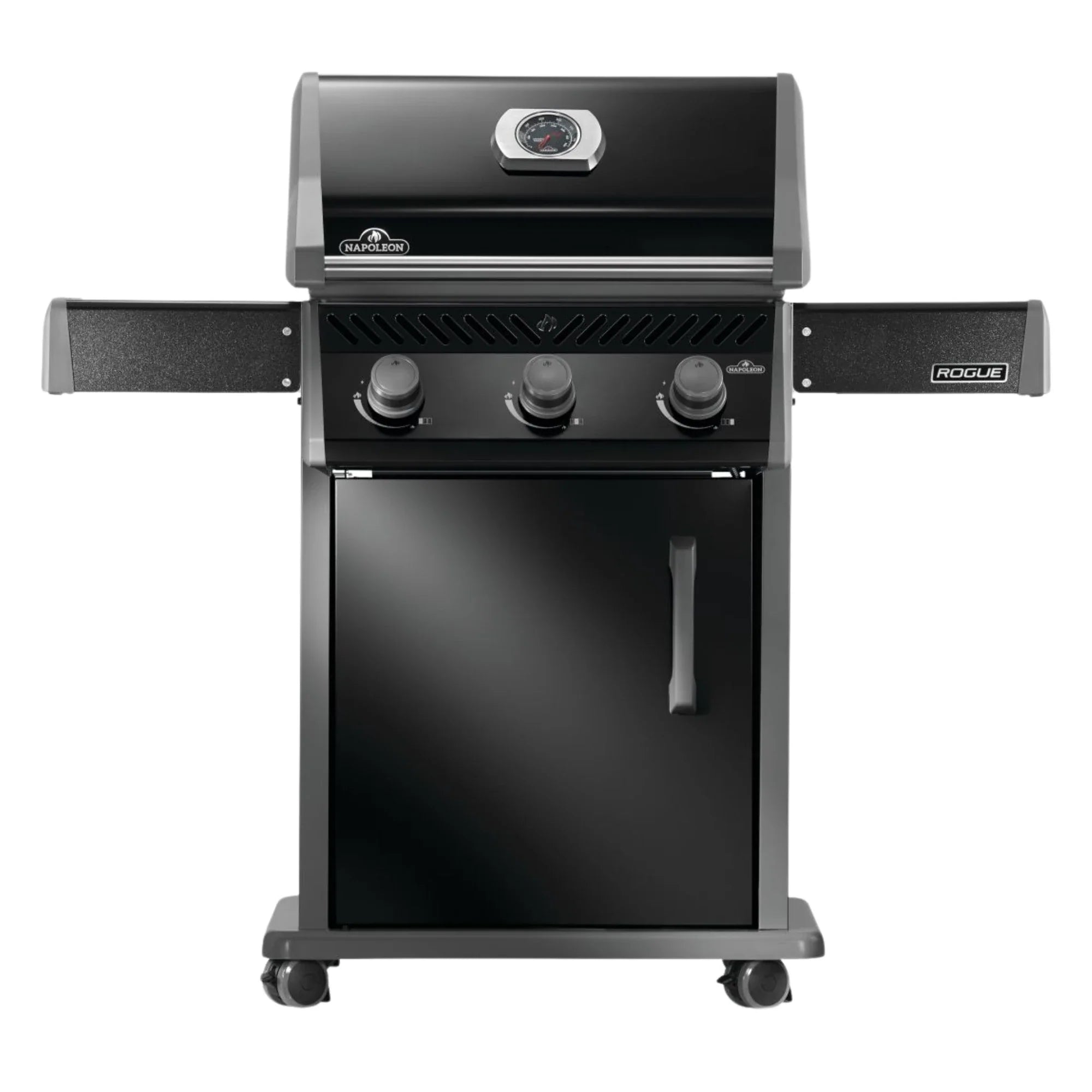 The Napoleon Rogue® 425 Freestanding Gas Grill combines premium features and outstanding performance in a compact, versatile design. With three stainless steel burners, porcelainized cast iron Wave™ cooking grids, and a durable black porcelain enamel finish, it delivers quality grilling in style. Perfect for smaller patios and balconies, this grill offers precise heat control, excellent searing, and convenient storage with folding side shelves.