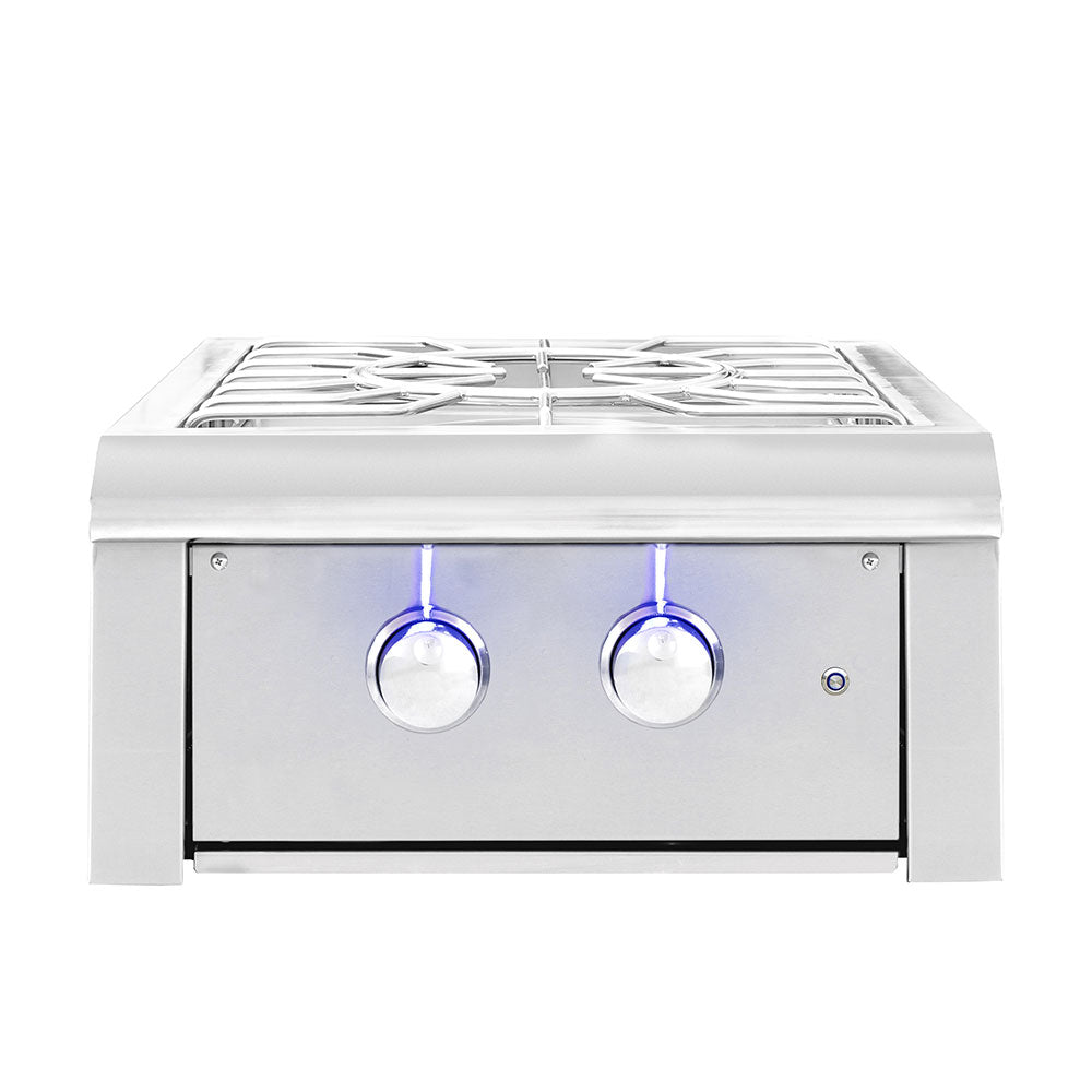 The Alturi Power Burner is a luxury gas component that is designed and built entirely in the USA. For unmatched power and performance, the Alturi Power Burner brings high BTUs of power to your outdoor kitchen to handle whatever culinary adventures you can imagine. Getting the quality and power of a gourmet kitchen range to your grill island, this built-in side burner allows you to enjoy all the benefits that cooking outdoors offers. Featuring the same classic design with commercial-grade features of the Alturi line of grills, the Alturi Power Burner is crafted with #304 stainless steel construction, heavy stainless steel grates, stainless steel lid, sleek design, and industry-top warranty. Variable temperature control allows you to rein in the firepower as needed, and the vibey LED lights add exciting ambiance and illumination. Bring on the tamale pot; this burner can handle anything for your family cookout and feast!